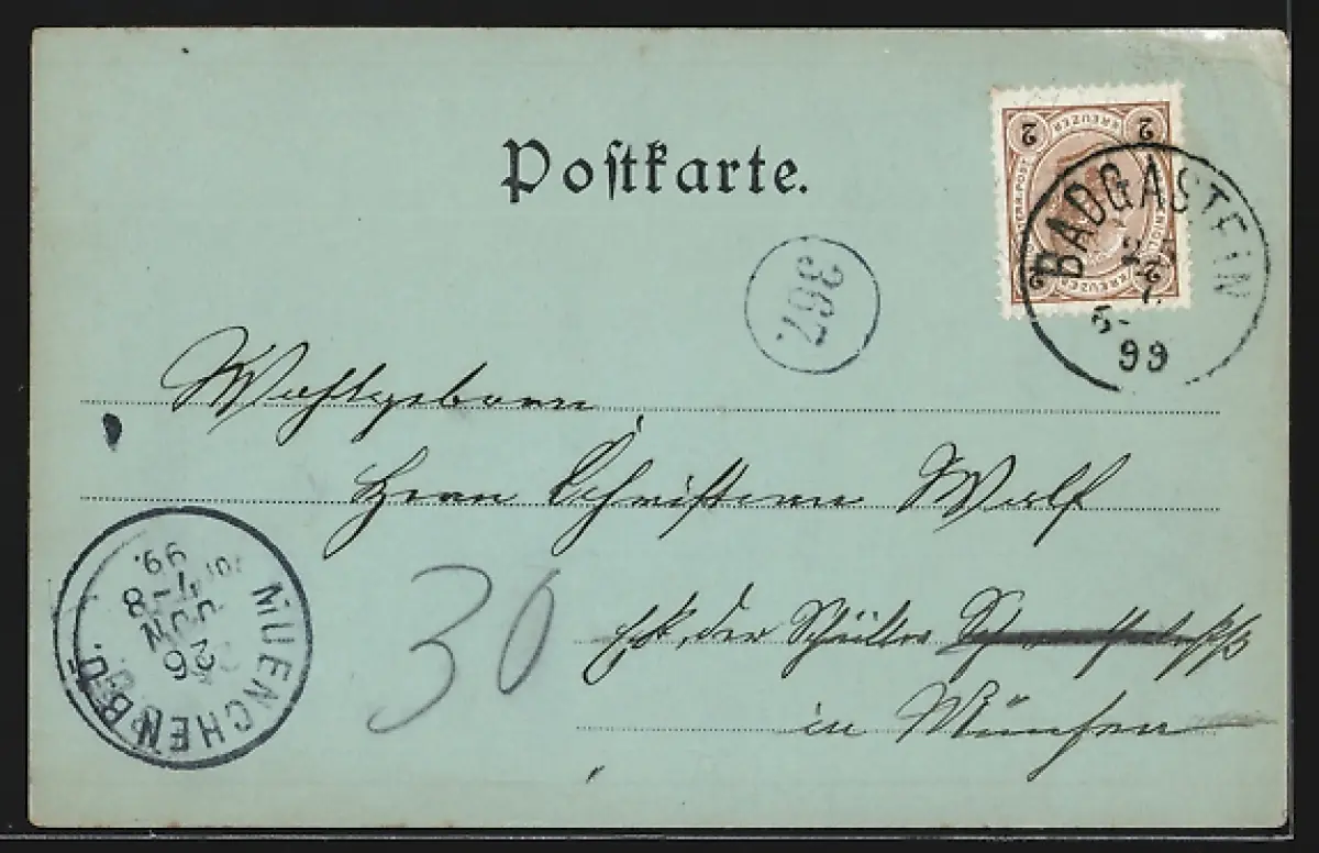 alte Ansichtskarte, gelaufen 1899, Stempelspur, guter Zustand