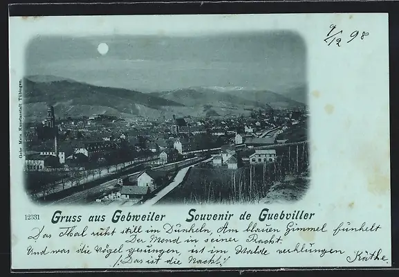 Mondschein-AK Gebweiler, Ortsansicht bei Vollmond