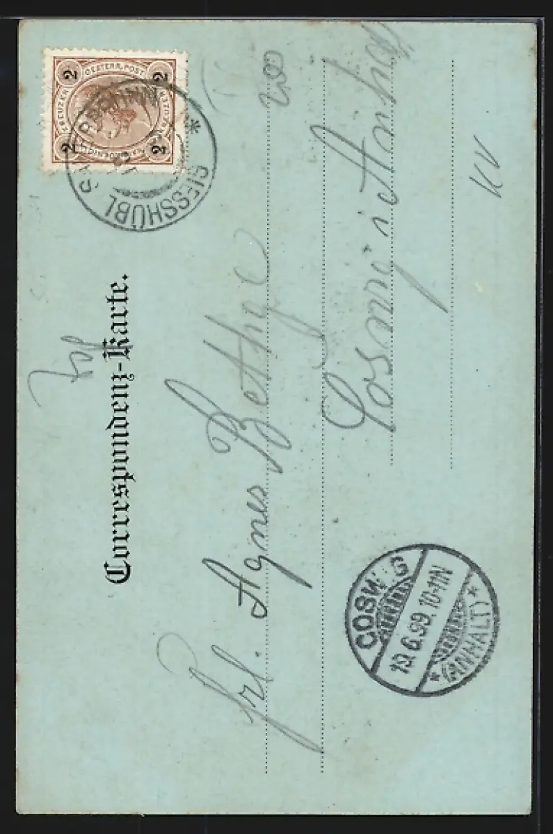 alte Ansichtskarte, gelaufen 1899, guter Zustand