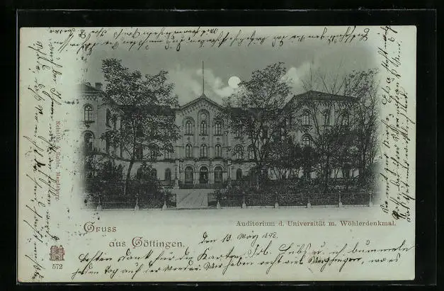 Mondschein-AK Göttingen, Auditorium d. Universität m. Wöhlerdenkmal