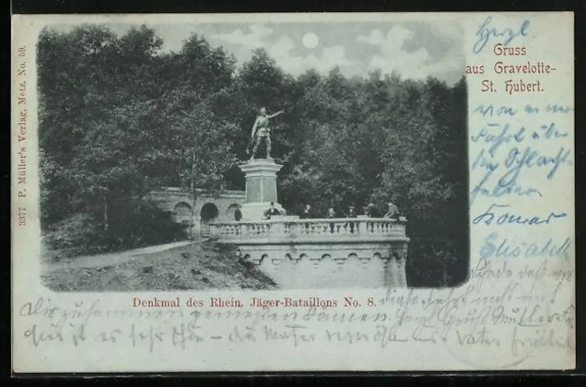 Mondschein-AK Gravelotte-St. Hubert, Denkmal Rheinisches Jäger-Bataillon No. 8