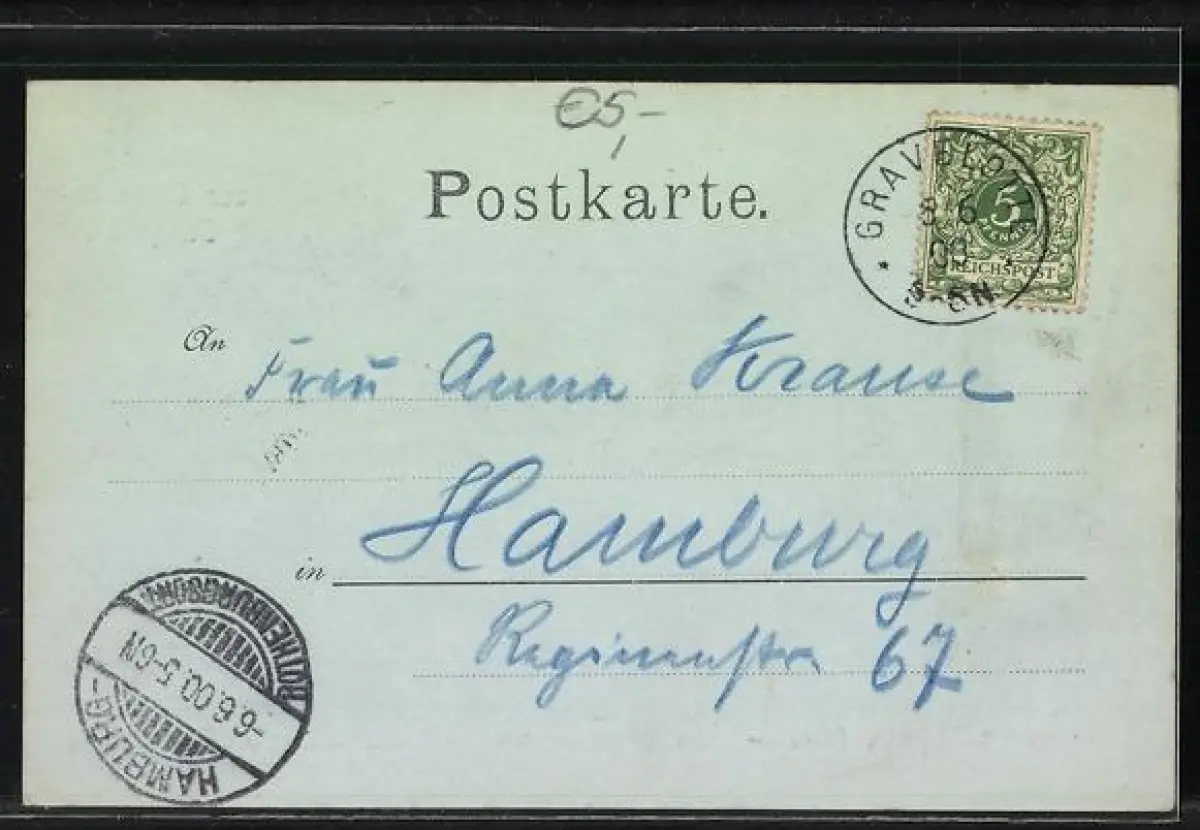 alte Ansichtskarte, gelaufen 1900, Stempelspur, guter Zustand