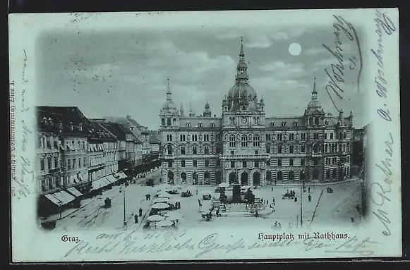 Mondschein-AK Graz, Der Hauptplatz mit Rathaus