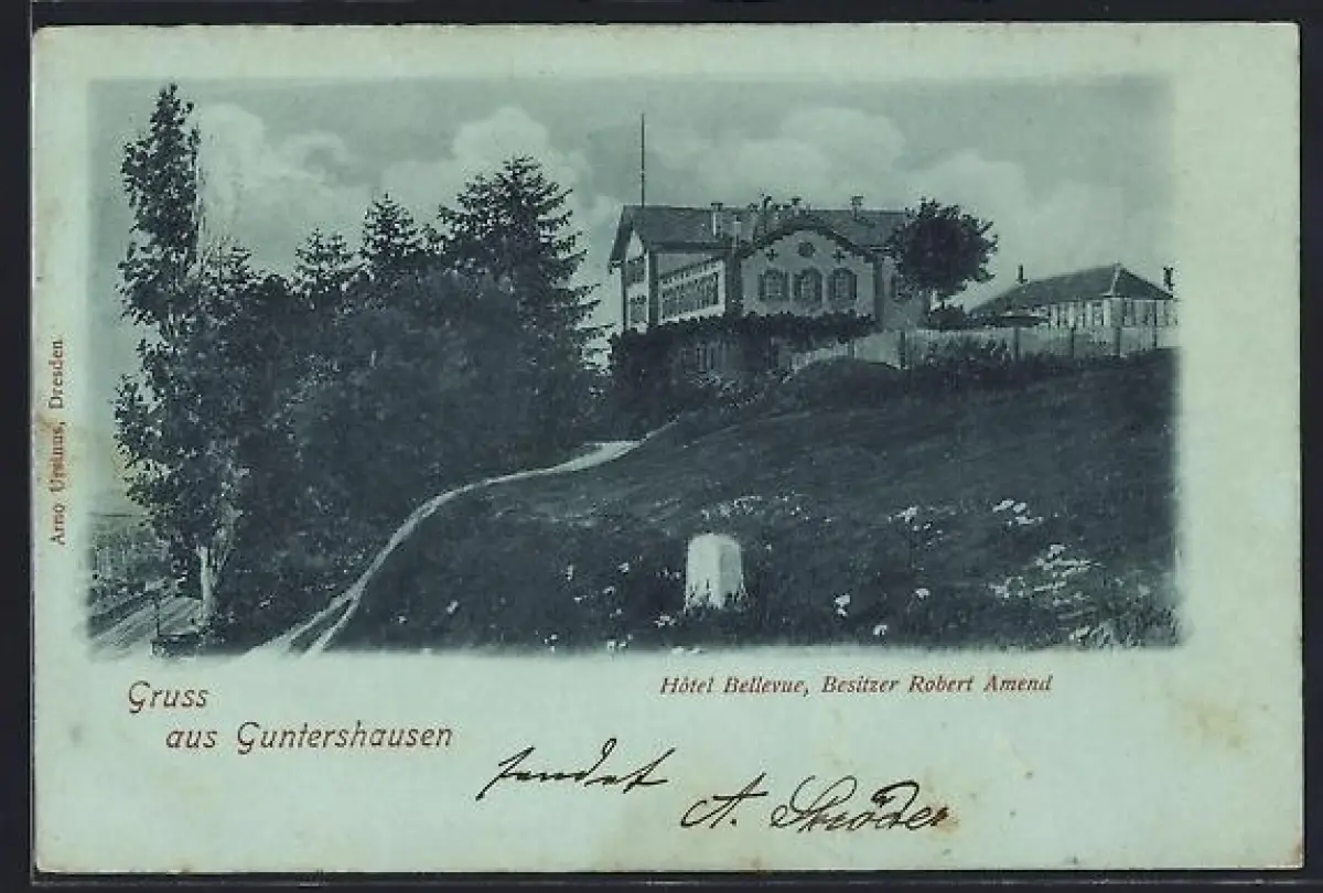 Mondschein-AK Guntershausen, Hotel Bellevue, Besitzer Robert Amend