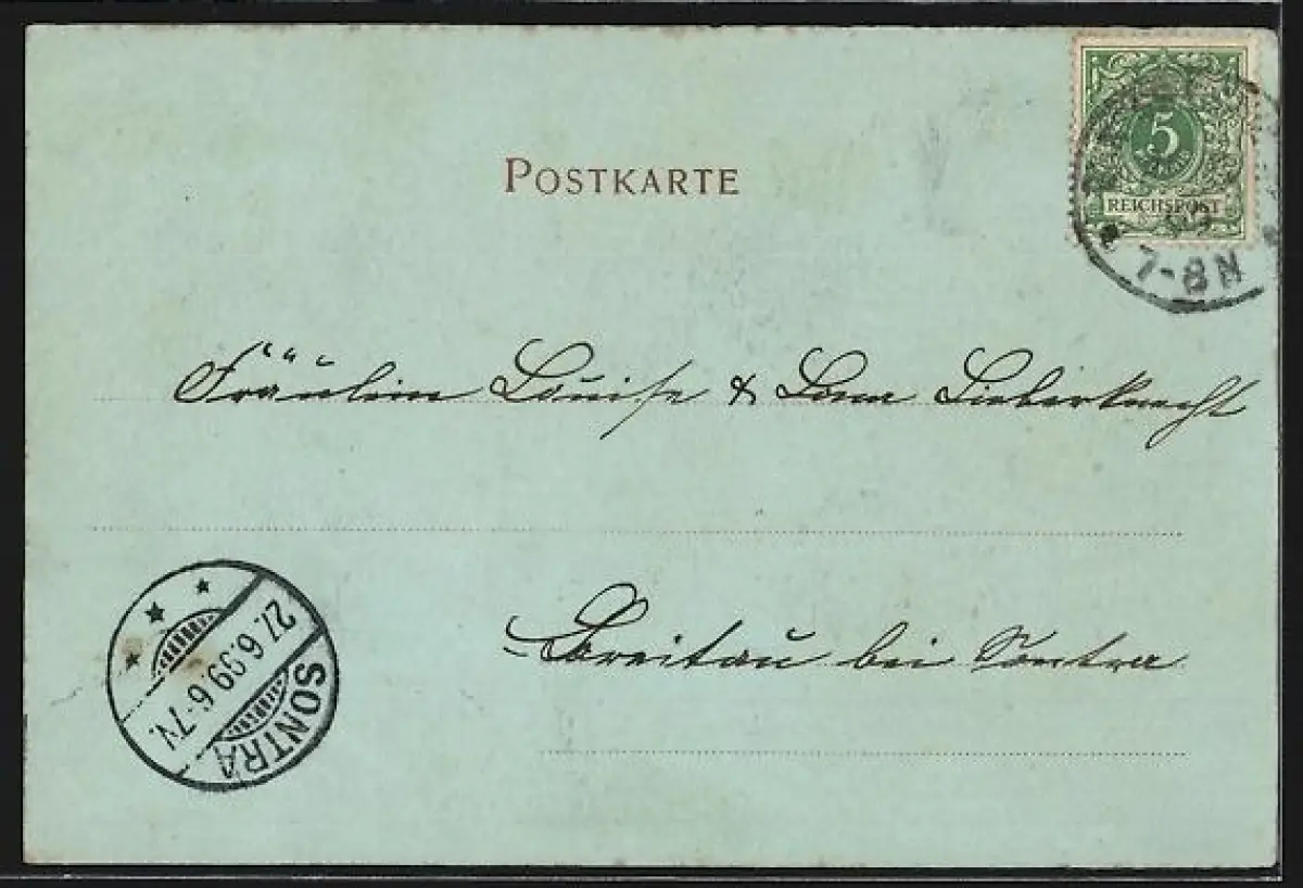 alte Ansichtskarte, gelaufen 1899, guter Zustand