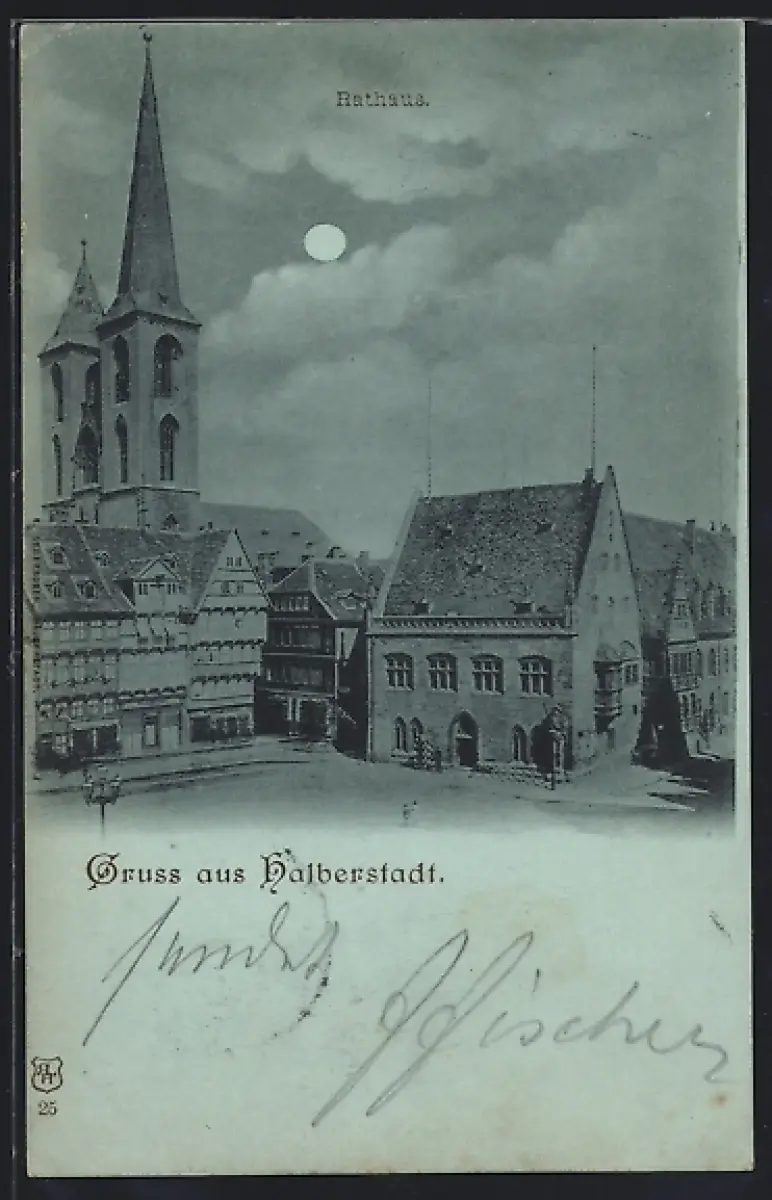 Mondschein-AK Halberstadt, Kirche im Vollmondlicht