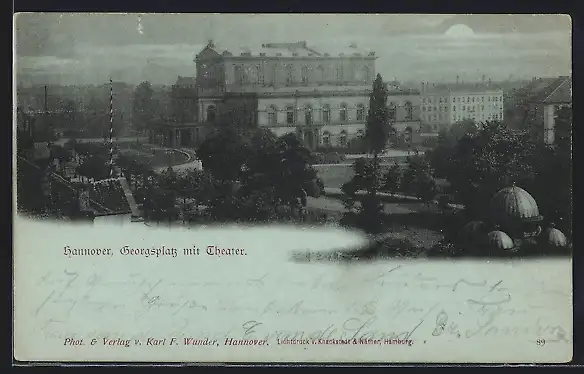 Mondschein-AK Hannover, Georgsplatz mit Theater