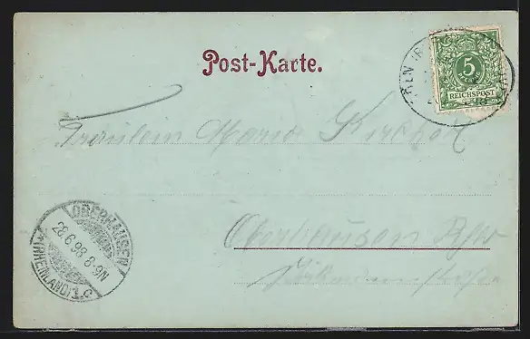 alte Ansichtskarte, gelaufen 1898, guter Zustand