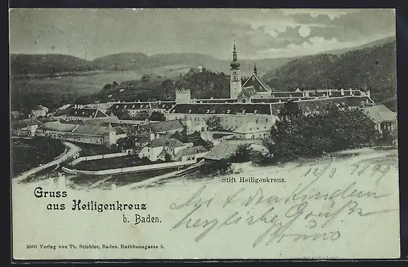Mondschein-AK Heiligenkreuz b. Baden, Stift Heiligenkreuz im Vollmondlicht