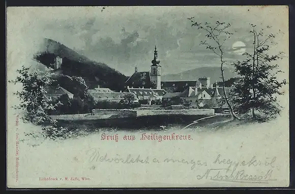 Mondschein-AK Heiligenkreuz bei Baden, Ortspartie mit Kirche