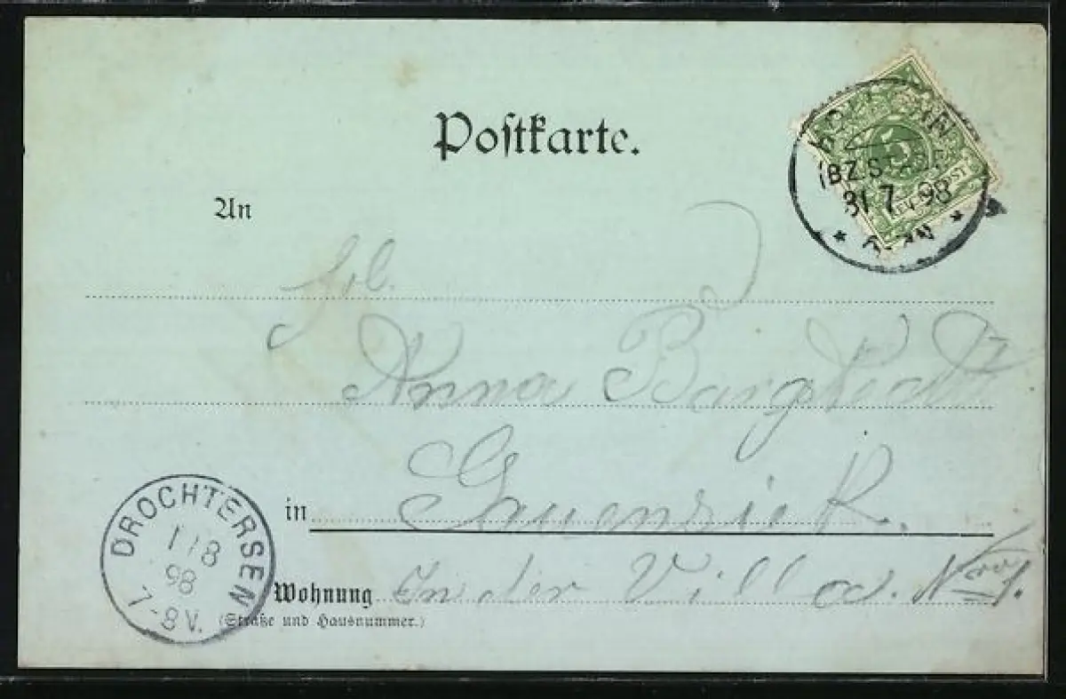 alte Ansichtskarte, gelaufen 1898, guter Zustand