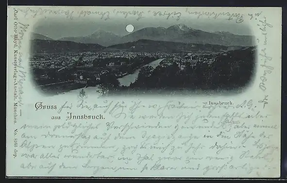 Mondschein-AK Innsbruck, Teilansicht mit Bergen