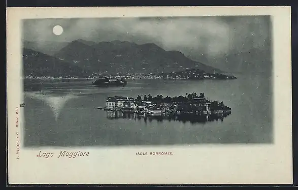 Mondschein-AK Isole Borromee /Lago Maggiore, Panorama
