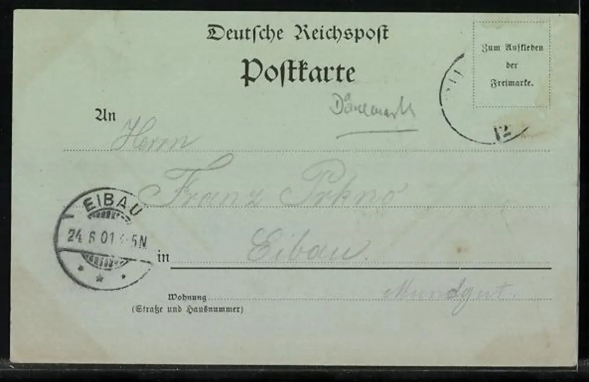 alte Ansichtskarte, gelaufen 1901, Briefmarke entfernt, guter Zustand
