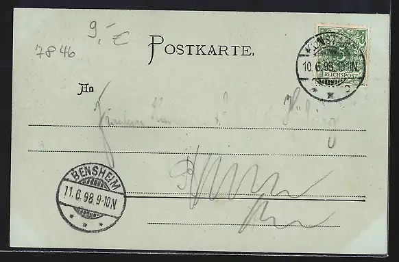 alte Ansichtskarte, gelaufen 1898, guter Zustand