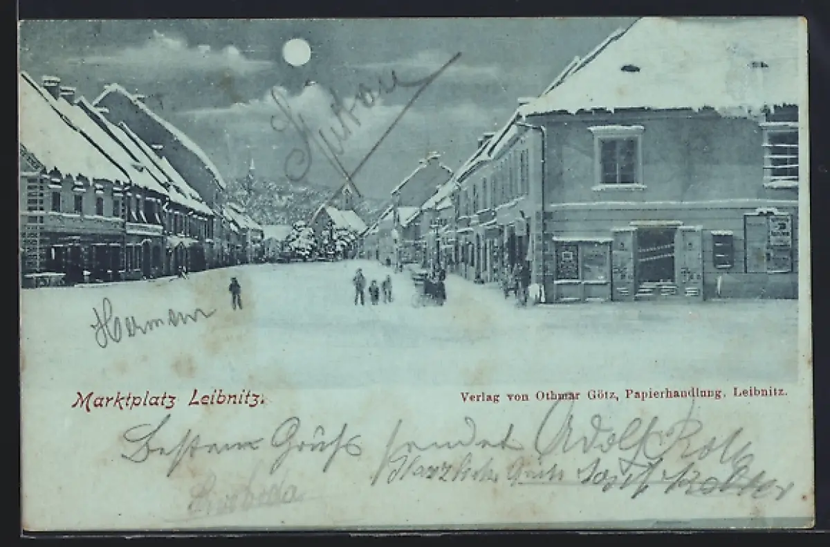 Mondschein-AK Leibnitz, Marktplatz im Vollmondlicht