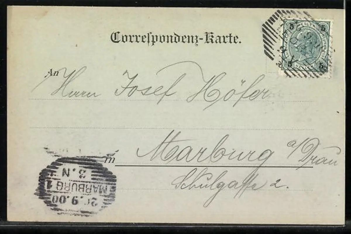 alte Ansichtskarte, gelaufen 1900, guter Zustand