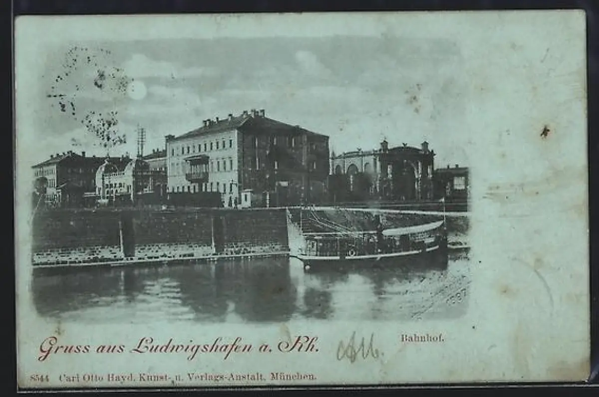 Mondschein-AK Ludwigshafen a. Rh., Bahnhof