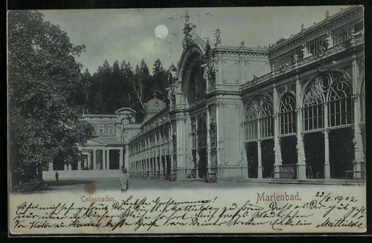Mondschein-AK Marienbad, Partie an den Colonnaden