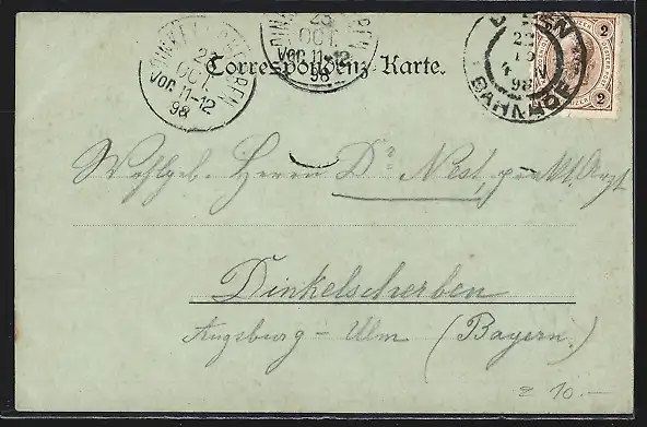 alte Ansichtskarte, gelaufen 1898, Eckknick li. unten, guter Zustand