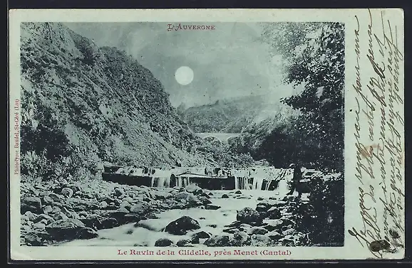 Mondschein-AK Menet, Le Ravin de la Clidelle sous la lune