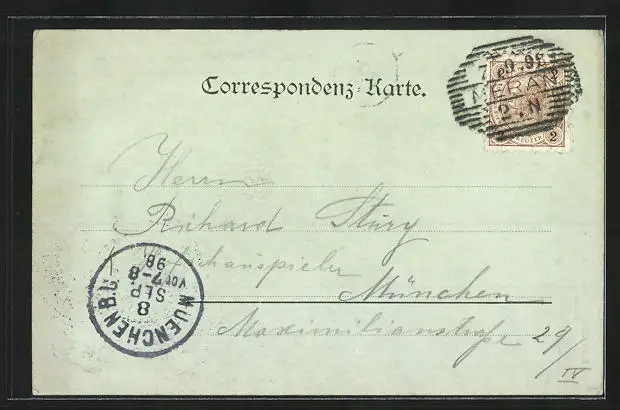 alte Ansichtskarte, gelaufen 1898, Stempelspur, guter Zustand