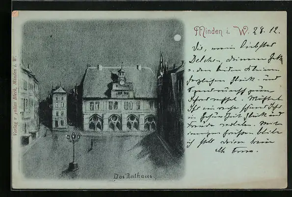 Mondschein-AK Minden i. W., Das Rathaus