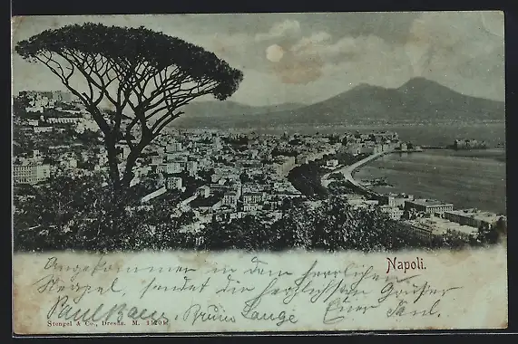 Mondschein-AK Napoli, Ortsansicht mit riesigem Baum