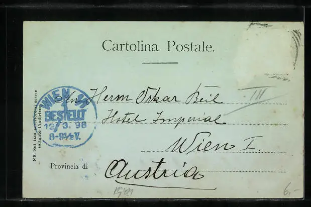 gelaufen 1898, Briefmarke entfernt, rückseitig Oberflächenschaden, Bugspur oben li., guter Zustand