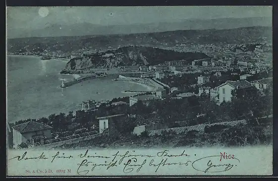 Mondschein-AK Nice, Vue panoramique du port et de la ville