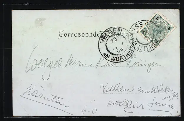 alte Ansichtskarte, gelaufen 1900, guter Zustand