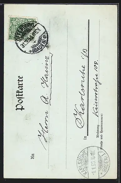 alte Ansichtskarte, gelaufen 1899, guter Zustand