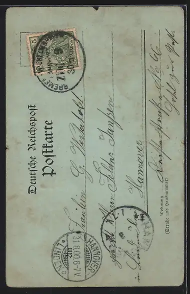 alte Ansichtskarte, gelaufen 1900, Eckknicke li. oben, minimale Einrisse oben u. re. mittig, guter Zustand