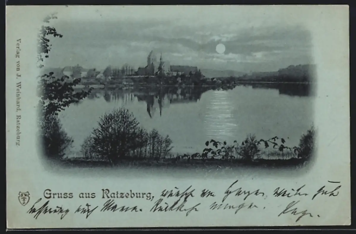 Mondschein-AK Ratzeburg, Seeblick bei Nacht