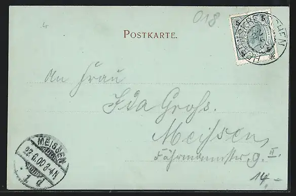 alte Ansichtskarte, gelaufen 1900, Eckknick oben li., guter Zustand