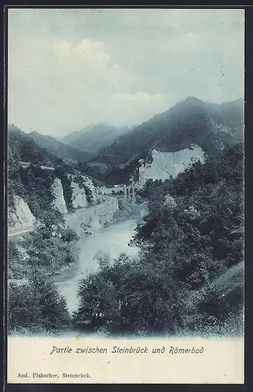 Mondschein-AK Steinbrück, Flusspartie zwischen Steinbrück und Römerbad