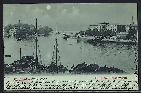 Mondschein-AK Stockholm, Utsikt fran Strandvägen