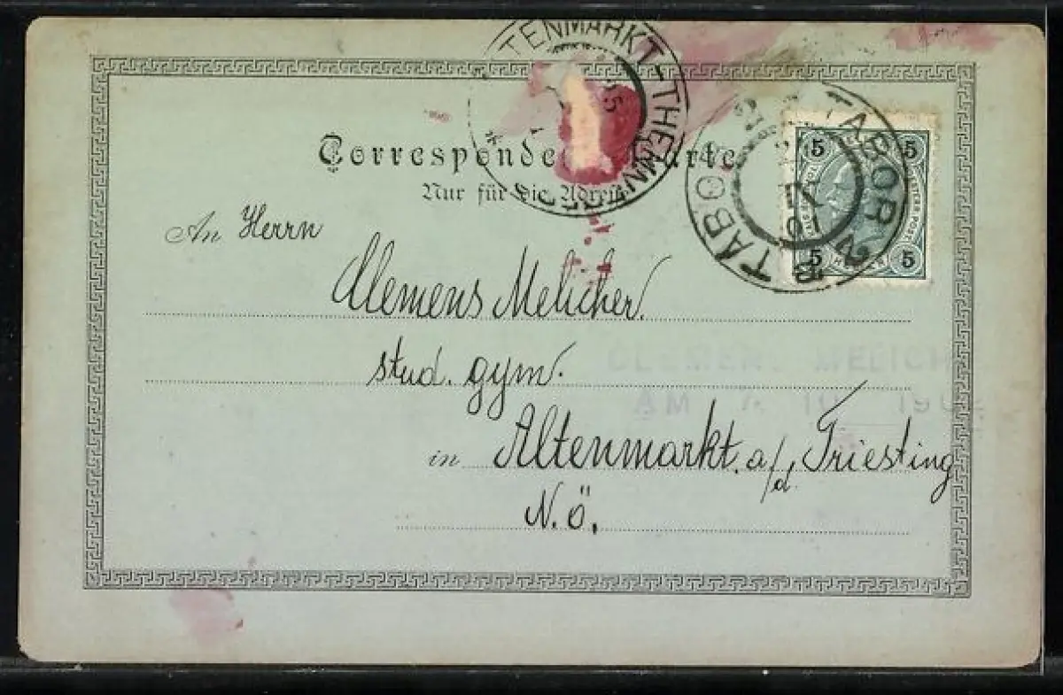 alte Ansichtskarte, gelaufen 1901, Eckknick li. oben, rückseitig Oberflächenschaden, Stempelspur, guter Zustand
