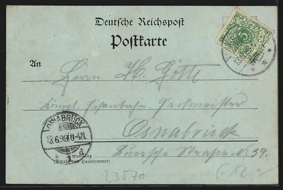 alte Ansichtskarte, gelaufen 1898, guter Zustand