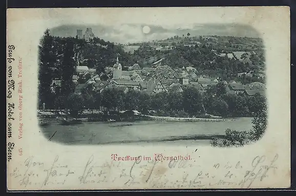 Mondschein-AK Treffurt im Werrathal, Blick auf den Ort