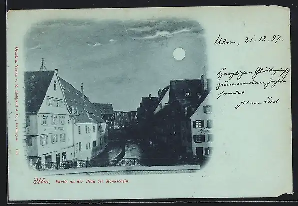 alte Ansichtskarte, gelaufen 1897, Eckschaden unten re., Eckknick oben re., Bugspur oben li., guter Zustand