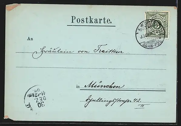 gelaufen 1897, Eckschaden unten re., Eckknick oben re., Bugspur oben li., guter Zustand