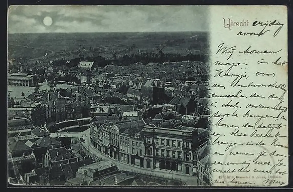 Mondschein-AK Utrecht, Teilansicht aus der Vogelschau