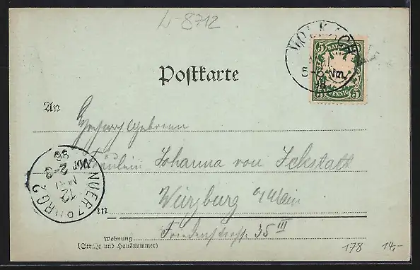 alte Ansichtskarte, gelaufen 1898, guter Zustand