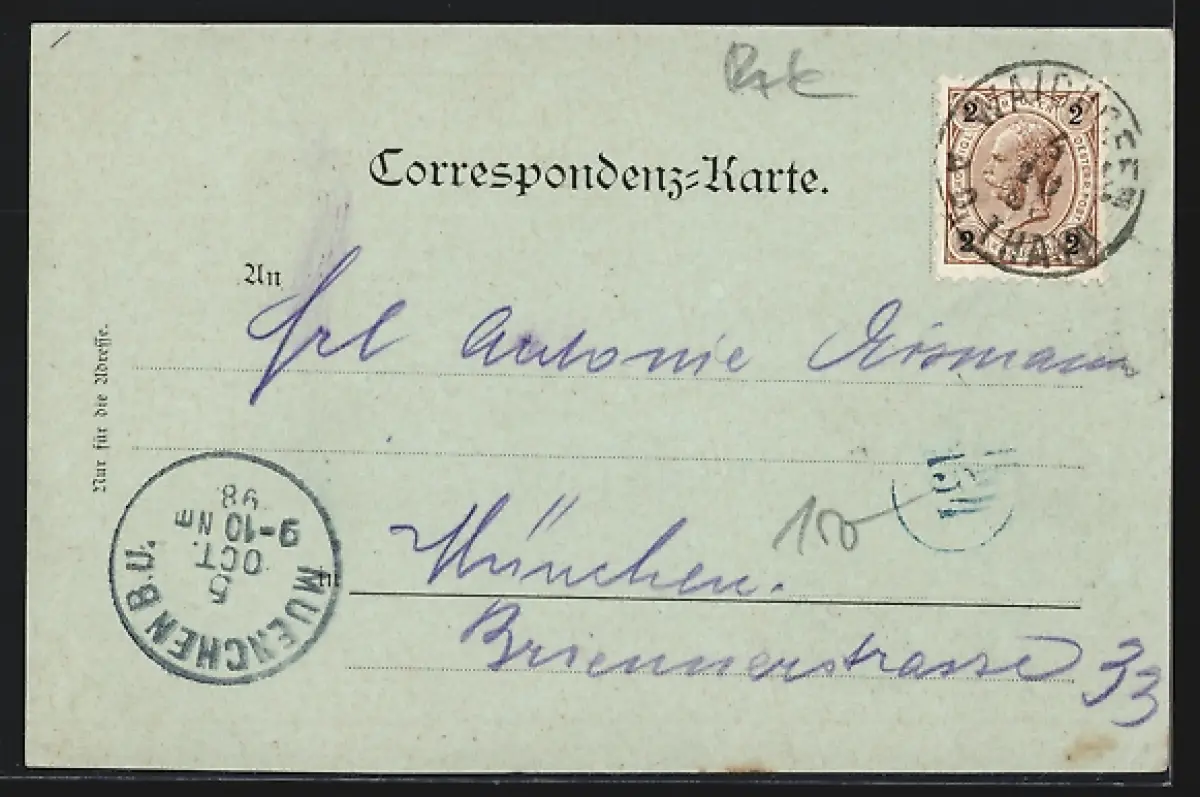 alte Ansichtskarte, gelaufen 1898, Eckknicke li. unten, guter Zustand