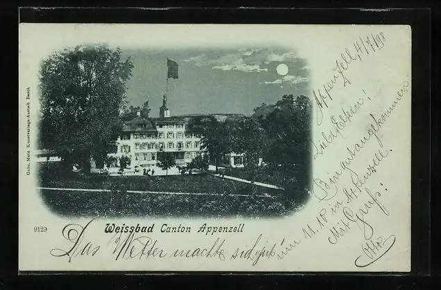 Mondschein-AK Weissbad b. Appenzell, Das Kurhaus am Abend