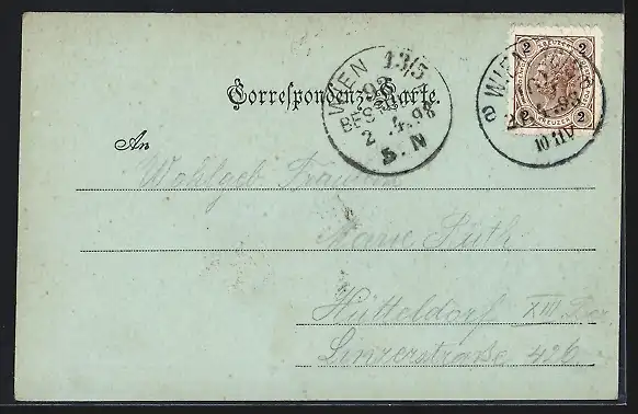 alte Ansichtskarte, gelaufen 1898, Stempelspur, guter Zustand