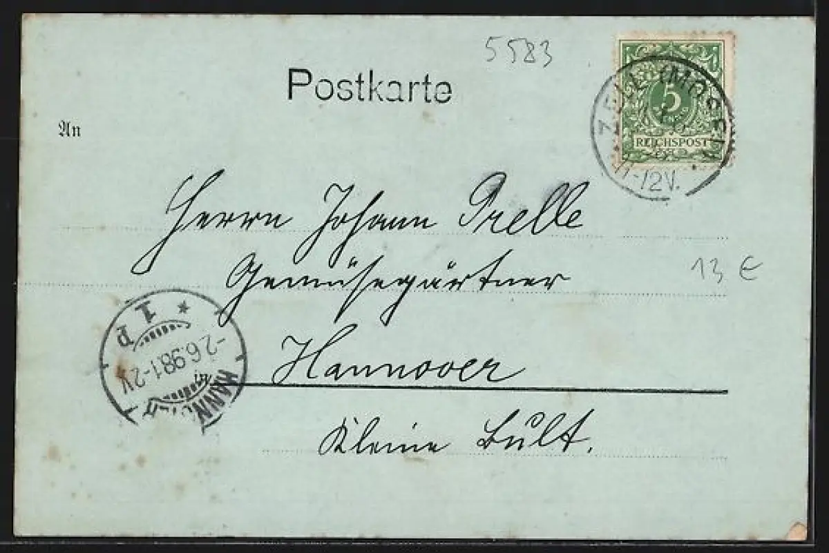 alte Ansichtskarte, gelaufen 1898, guter Zustand