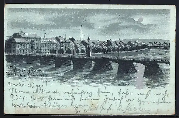 Mondschein-Lithographie Basel, Klein-Basel bei Vollmond