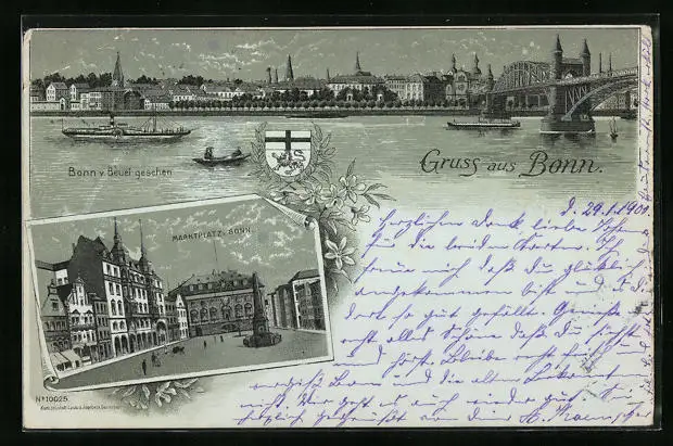Mondschein-Lithographie Bonn, Totalansicht mit Marktplatz